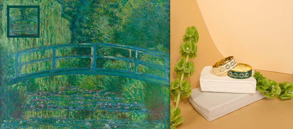 The Japanese wooden bridge, the central motif of the work, structures this aesthetic quest while providing an ideal vantage point from which to study the chromatic metamorphoses of his private aquatic universe.