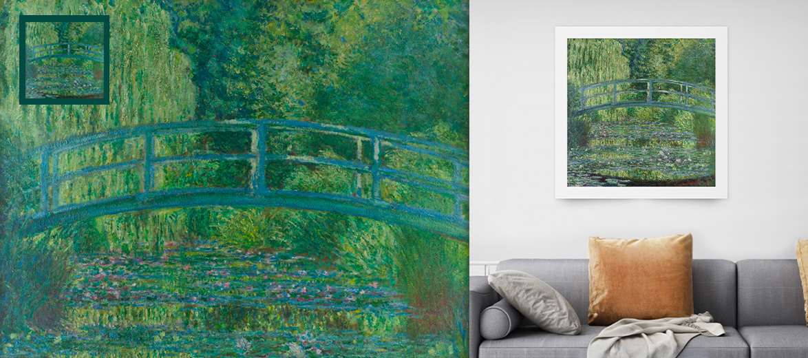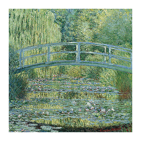 This iconic work depicts the Japanese bridge spanning the water lily pond in his water garden at Giverny, a motif that the Impressionist master painted in twelve versions during this period. The composition favors a chromatic harmony dominated by greens and bluish greens, revealing Monet's revolutionary technique of capturing natural light rather than faithfully reproducing reality.