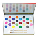 A box of watercolour paints elegantly illustrated by artist Andy Westface.