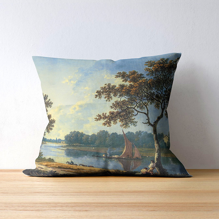 This cushion cover is inspired by the work of the landscape painter from the English painting school, Richard Wilson "The Thames near Marble Hill, Twickenham", c. 1762.
