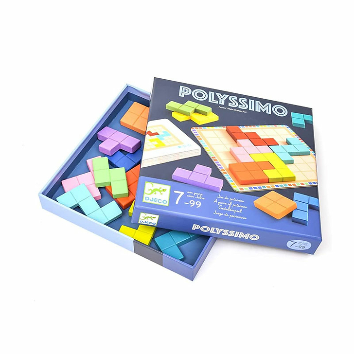 A logic game in which you have to make a perfect square for each challenge, using the 11 wooden pieces.