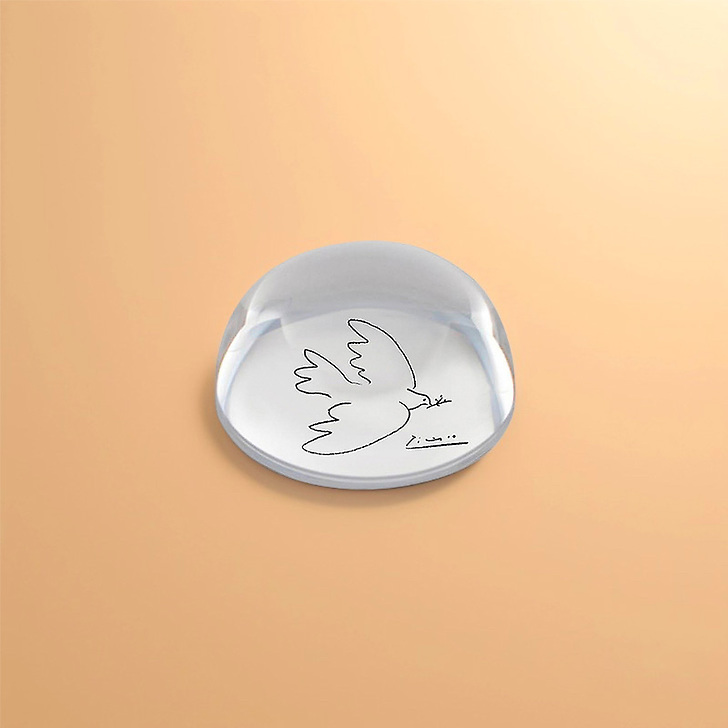 The motif on this paperweight is inspired by Pablo Picasso's famous drawing Dove of Peace (1949).