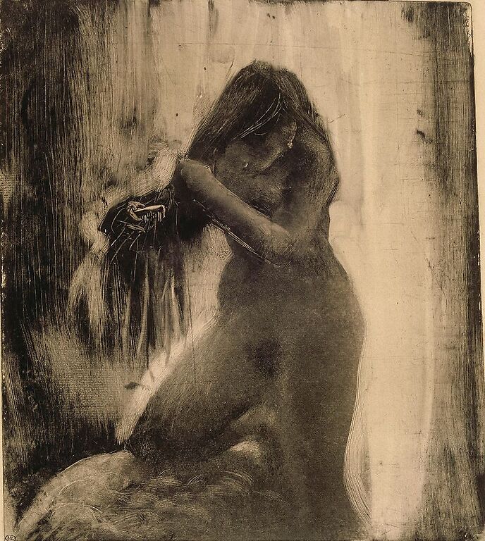 Original work by: Degas, Edgar Original height: 31.50 cm Original width: 2.80 cm Period: 19e siècle, 20e siècle, période contemporaine de 1789 à 1914 Technic: mine de plomb, pastel Degas Edgar - Femme, nue, se coiffant - mine de plomb, pastel © RMN-Grand Palais (musée d'Orsay)