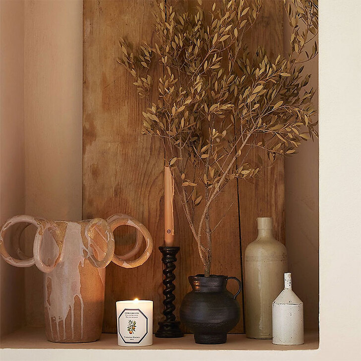 Their botanical perfume prevails when opening the box; once lit up, the taper candles only diffuse a golden halo.