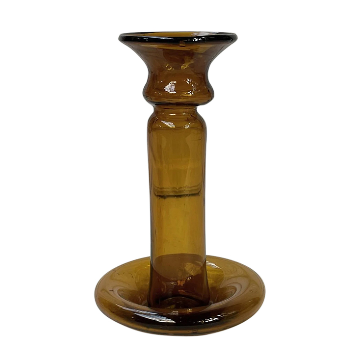 The Porta Candele Miel glass candle holder brings a refined, classic touch to any space and offers versatility as both a candle holder and a bud vase. With its timeless shape, this piece beautifully enhances the warmth of candlelight or the charm of a single bloom. Display it solo or pair it with our Porta Candele With Handle and Porta Candele Piccolo for a layered effect. Mouth-blown from recycled glass by skilled artisans, the Porta Candele Miel showcases traditional glasswork with a sustainable twist. This adaptable piece effortlessly creates a cozy, inviting ambiance with a hint of Italian sophistication.