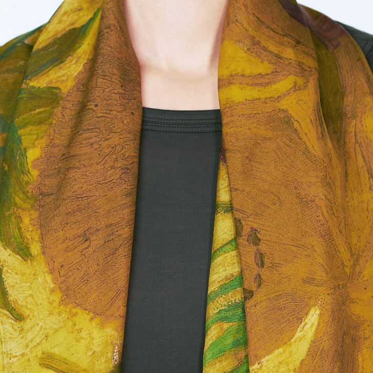 Brighten up your look with this elegant scarf printed with a detail from one of Vincent van Gogh (1853 - 1890) most famous paintings, "Sunflowers", 1889, Van Gogh Museum, Amsterdam.