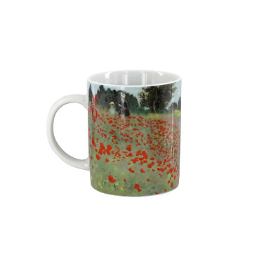 The painting Poppies depicts a rural scene with a row of trees in the background forming the only stable line in the composition. The field of poppies stretches like a sea to the horizon, while a bright blue sky accentuates the feeling of being outdoors. Monet deliberately blurs the contours and creates a colourful rhythm using bright red spots that contrast with the pale green of the meadow.