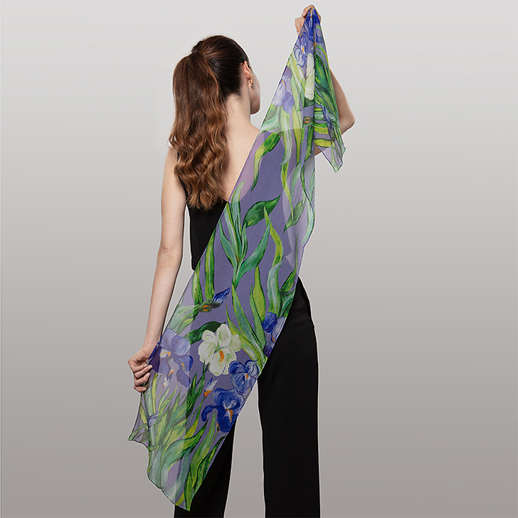 In the nursing home of Saint-Rémy-de-Provence, a former monastery of the 12th century, Van Gogh painted the irises that lined the alley leading to the cloister. This painting was, as for many artists of this period, influenced by Japanese paintings, ukiyo-e (floating world). Vincent Van Gogh took up this theme of irises, not in the ground like those in the garden of Saint-Rémy, but in very simple vases where the deep blue flowers bloom.