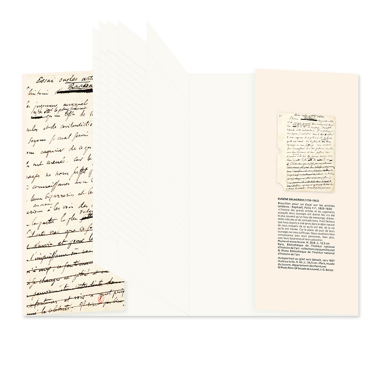 Brouillon pour un Essai sur les artistes célèbres: Raphaël, Folio 1 r°, 1829-1830 - Plume et encre brune. H. 20,8; L. 15,5 cm - Paris, Bibliothèque de l'Institut national d'histoire de l'art - Collections Jacques Doucet