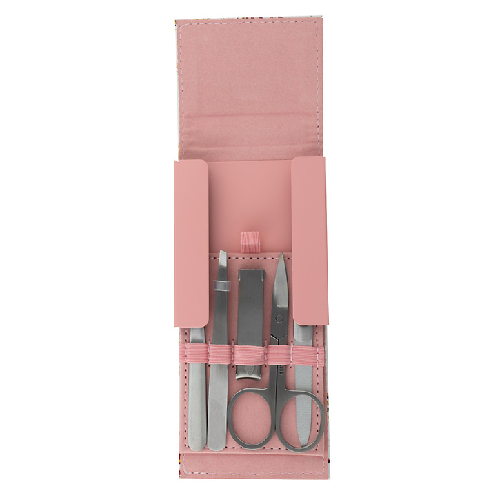 Cuticle repellent; tweezers; scissors; file; wooden and nylon nail clippers