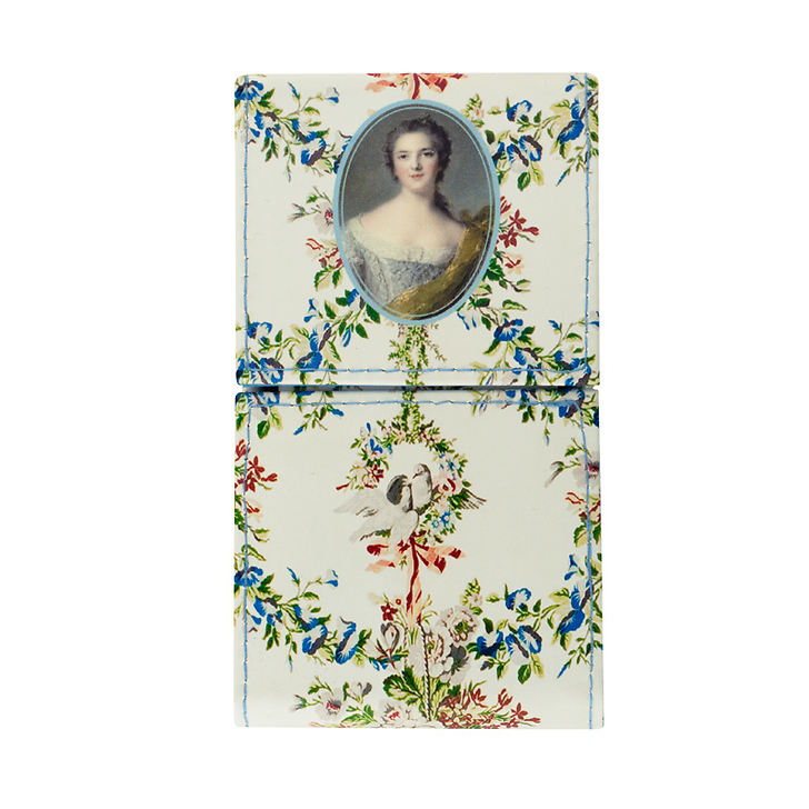 An elegant Make-up set illustrated with a portrait of Marie-Louise-Thérèse-Victoire de France, known as Madame Victoire, painted by Jean-Marc Nattier in 1748. The motifs reproduce the drapes of Madame Victoire's room.