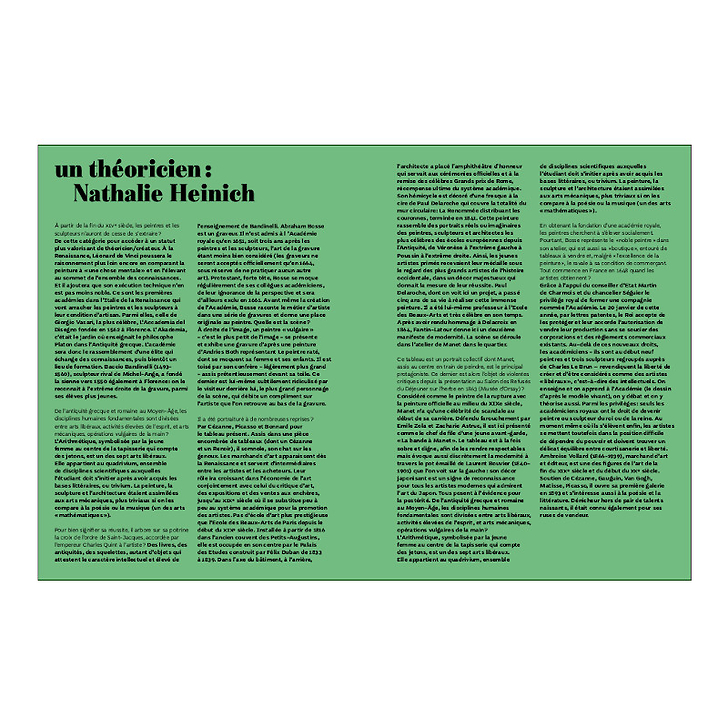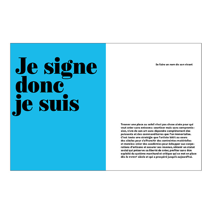 About a hundred works tell this exceptional story through several thematic sections: individualization through signature, emancipation through corporatism, elevation through the fabrication of "genius", consecration through self-representation, and distance through the revelation of the "behind the scenes".