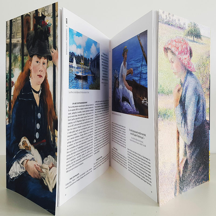 How can we trace their history as closely as possible? By following in their footsteps year after year, by following them on a daily basis, in their times. They study in a free workshop, meet in the café, design exhibitions. They go to Chatou or to the seaside, to the South or to the Marquesas. They place their easel facing a cathedral or storms. They render the fugitive of a perception, use a broad technique, favor light colors. They show modern life, paint Haussmann's Paris, and divide during the Dreyfus affair. They scandalize or excite. An artistic and symbolic revolution is underway.