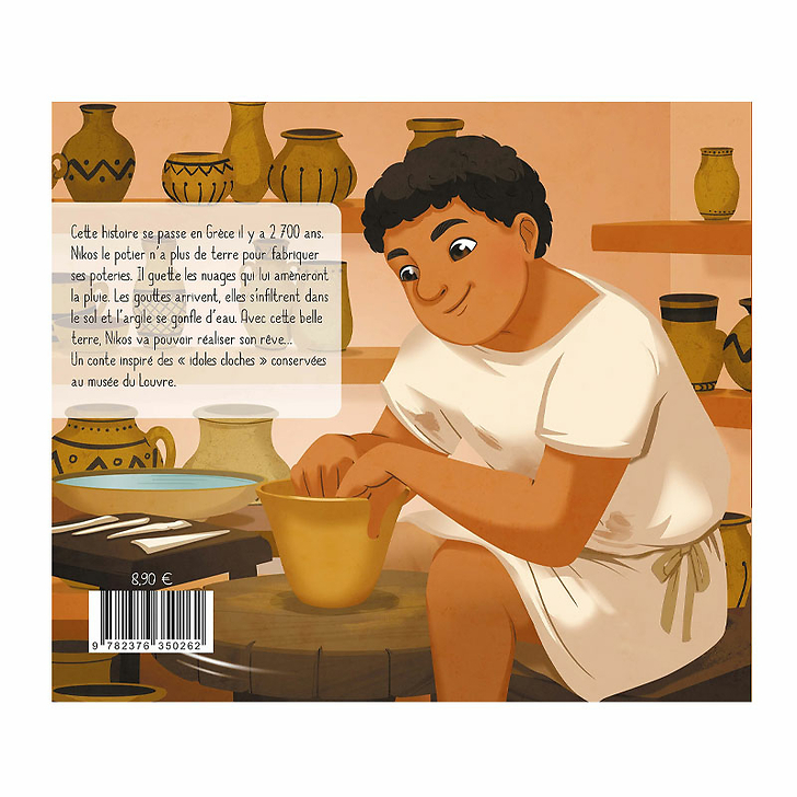 This story takes place in Greece, 2700 years ago. It all starts on a rainy day, when the earth swells with water. Nikos the potter is happy because he will be able to fetch water to make his pottery. Under his nimble fingers, the clay balls will soon become pretty little statuettes that go "ding-dong!" when you shake them.