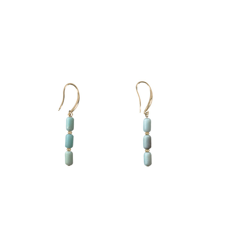 The earrings are adorned with natural stones, each of which has slight variations in color, reflecting their unique character.