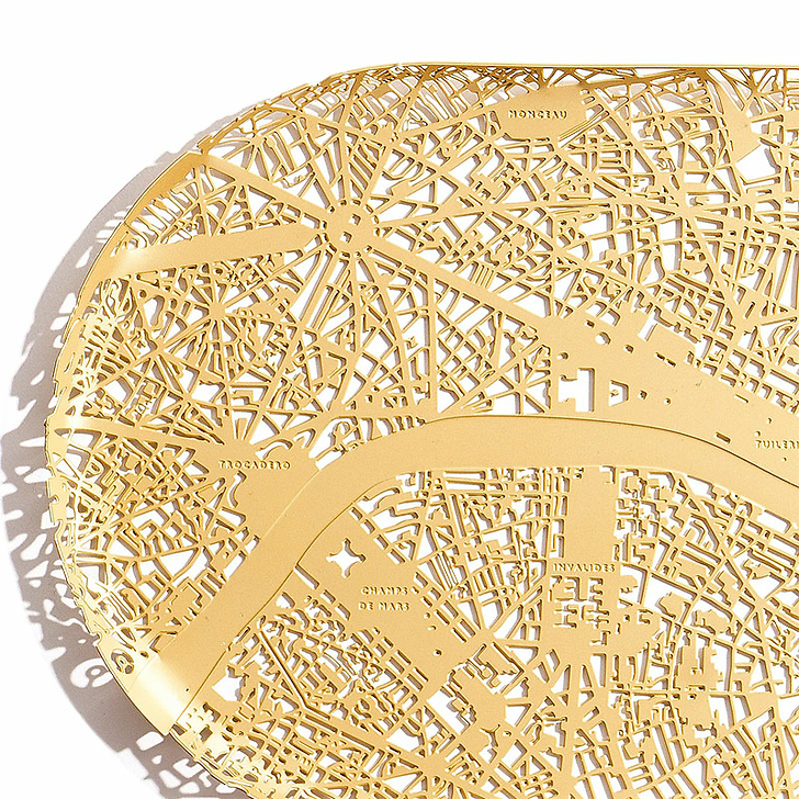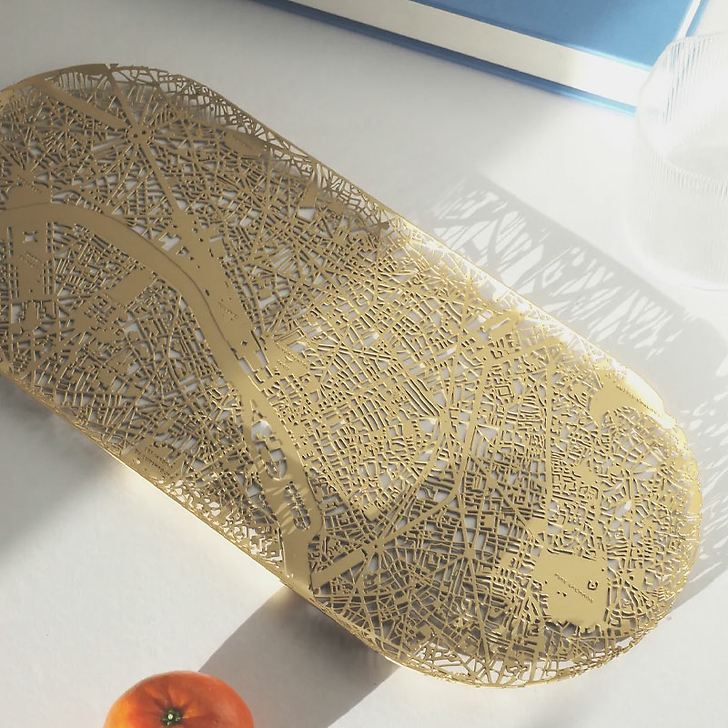 Walks along the Seine, laughing in the rain - flood your mind with memories of that special weekend. Get lost in this solid brass map of the city, formed into a serving tray for a cosy morning coffee in bed, or a conversation piece for the table.