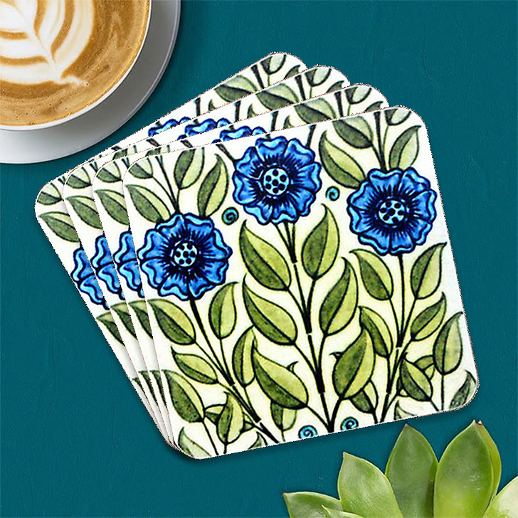 Elevate your table setting with coasters featuring your favourite Arts and Crafts designs. This cork-backed wooden coaster, made in the UK, features a blue floral design adapted from a tile by William De Morgan, dating from the late 19th century. De Morgan was a potter, stained glass...