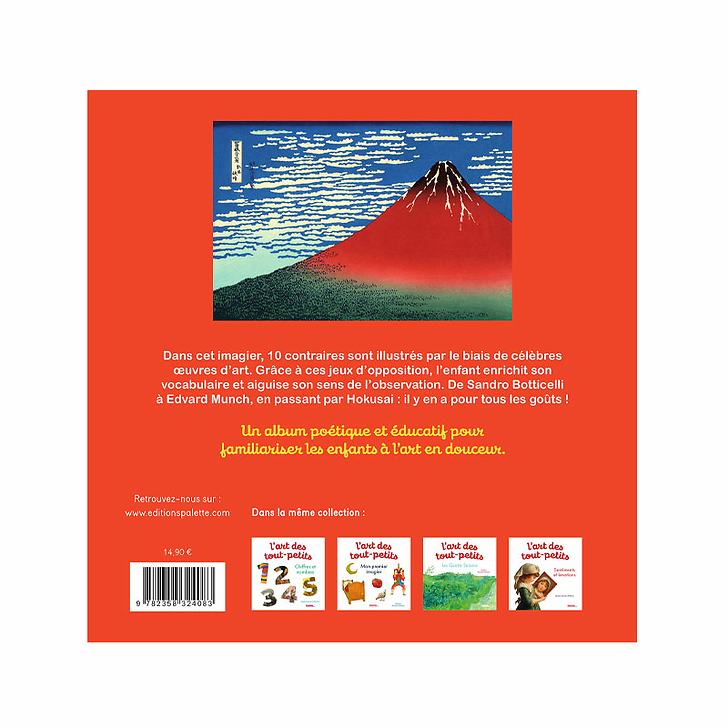 Day and night, small and large, above and below... Learning vocabulary through opposites is common in early childhood. With poetry, this picture book highlights these games of opposition by proposing, face to face, two works that respond to each other.