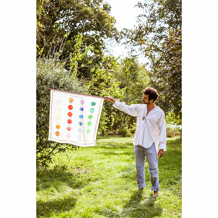 Make your colour scales by contemplating "GAMME DE COULEURS", a colour chart inspired by the watercolour palette used by Marin Montagut to enchant us with his illustrations. It is declined here in a scarf, delicately printed in Lyon, France.