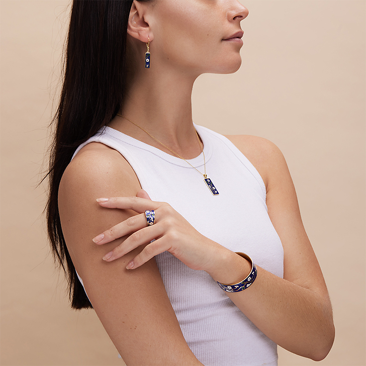 The Flower of the Fields jewelry, freely inspired by this painting, recalls the crown finely composed of white bindweed, wild and ephemeral flowers, which illuminates the black hair of this pensive young woman.