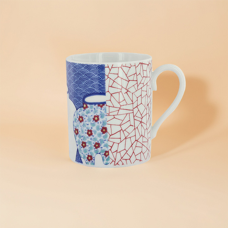 This mug is inspired by a detail of a dish with three jars (sanko) decoration (Japan, Edo period (1603-1868), 18th century) - Porcelain with underglaze cobalt blue decoration and enamels. H. 5,8; W. 20,3 cm. Paris, Musée national des arts asiatiques-Guimet. Donation Ernest Grandidier, 1894).