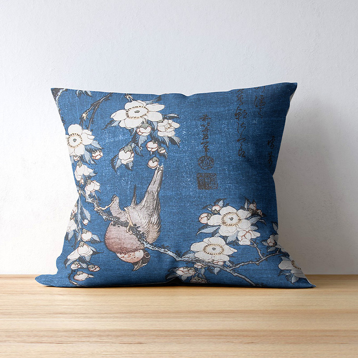 Cushion cover Katsushika Hokusai - Bullfinch and cherry-tree - 40x40cm
