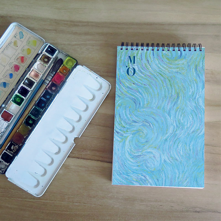 The illustration on this notebook uses the gradations of blue skies from the work by Vincent Van Gogh (1853 - 1890).