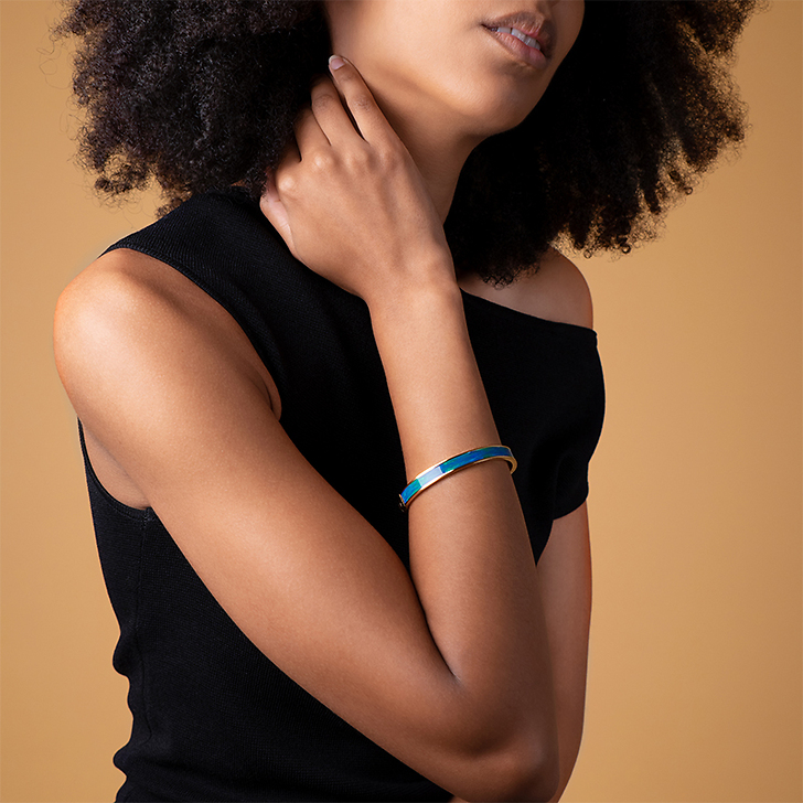 Bangle-Up plays with the stylized patterns of water lilies on a green or sand white background in this mini collection created exclusively for the Musée de l'Orangerie boutique and inspired by Claude Monet's work Water Lilies, Green Reflections, painted between 1914 and 1926.