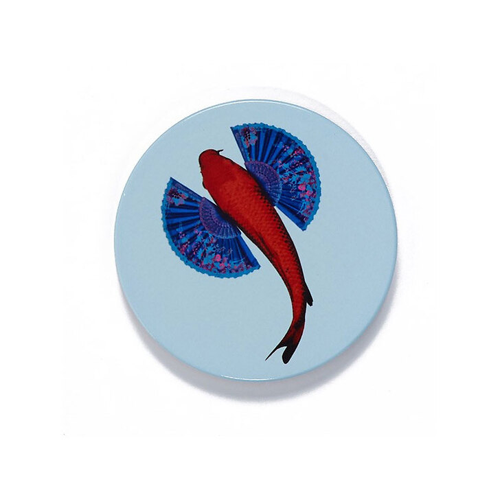 Part of the Curiosito collection, this set of 4 Fishkoï ceramic coasters is illustrated with a koi carp with fan-shaped wings.