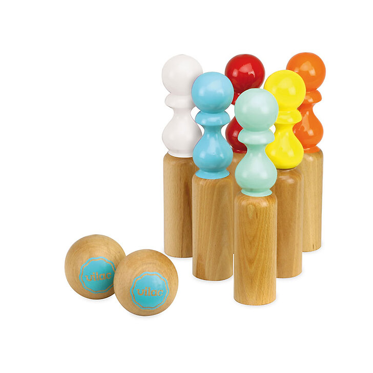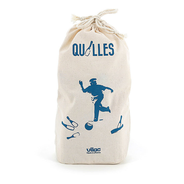 Bowling game in turned and lacquered wood delivered in a pretty cotton bag
