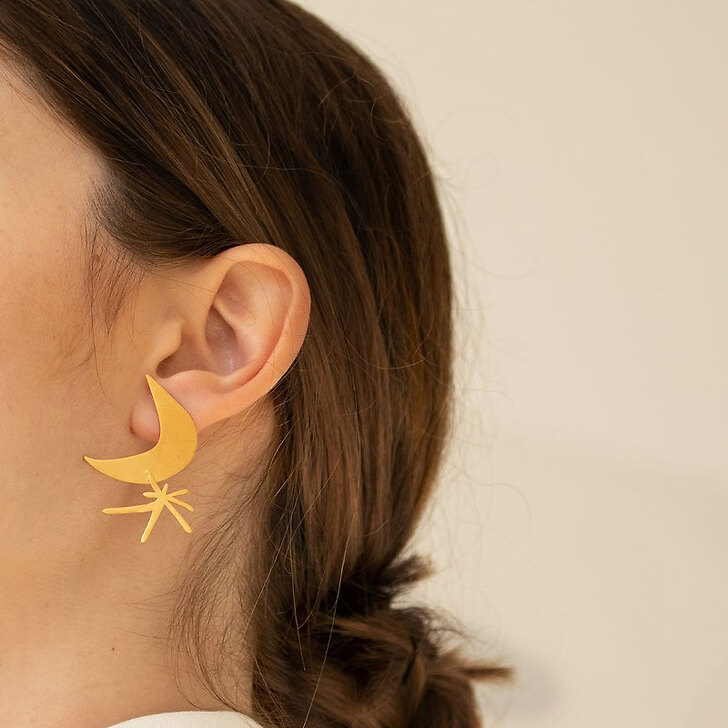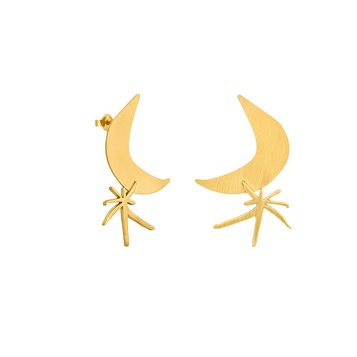 Made of 24 K gold-plated metal. A big moon and a star composition at the bottom.