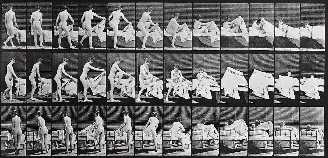 Animal Locomotion: Nude woman getting into bed (art prints)