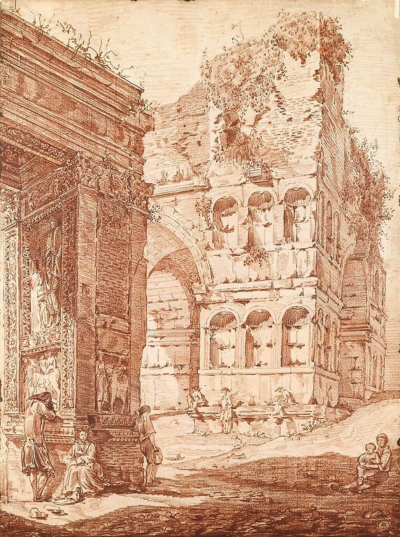 Several people among ancient ruins (art prints)