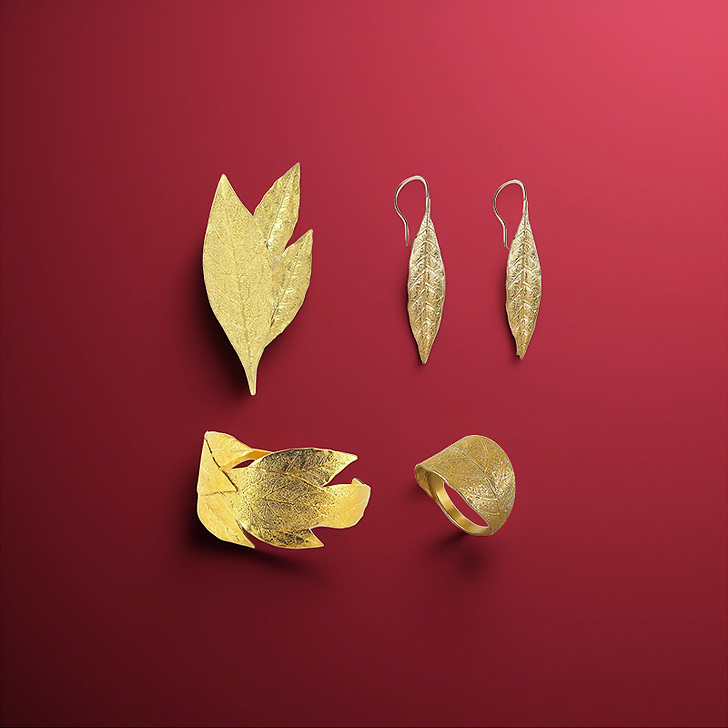 These jewels were inspired by a gold laurel leaf that fell off during Napoleon's fitting of the coronation crown (it now adorns a snuffbox kept at the Château de Fontainebleau).