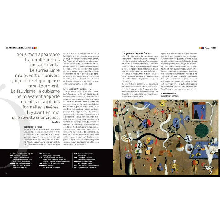 The year 2024 celebrates the 100th anniversary of Surrealism, a major movement of the 20th century crystallized by the pen of André Breton, brought to its peak by Dali and Magritte, but also by Jean Arp, Paul Delvaux, Leonir Fini, Meret Oppenheim, and whose influence on the 20th and 21st centuries remains unequaled! This fascinating, dynamic and provocative movement was born in the aftermath of the Great War. It draws its roots and themes from the unconscious, dreams, sexuality, violence. What are the major foundations of this movement? Which artists, both men and women, have left a lasting mark on it? How can we interpret its strange and mysterious works? This event book offers a rediscovery of the greatest surrealist artists and an exploration of the founding works in painting but also in literature, poetry, cinema, photography... THE reference book on Surrealism!
