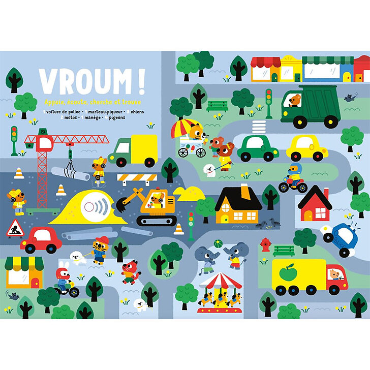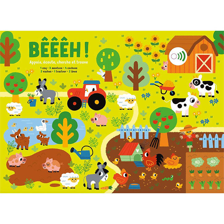 Listen, recognize, search and find... 8 abundant double pages and 8 random chips to discover the sounds of life: 50 sounds to recognize and more than 100 objects...