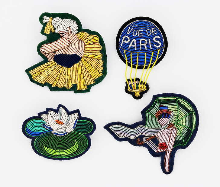 The embroideries on our brooches are created and designed especially by M&L's designers. They are made entirely by hand, in cannetille thread, using an ancient Indo-Pakistani technique. That's why, in 2009, we recruited our embroiderers in Pakistan, where we built our craft workshop.