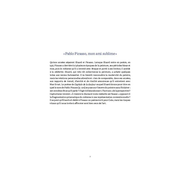 Born in the mid-1920s, in the midst of the Surrealist movement, the friendship of Paul Éluard and Pablo Picasso took on a new dimension in 1935, to experience seventeen years of shadowless exchanges, until Éluard's death in 1952.