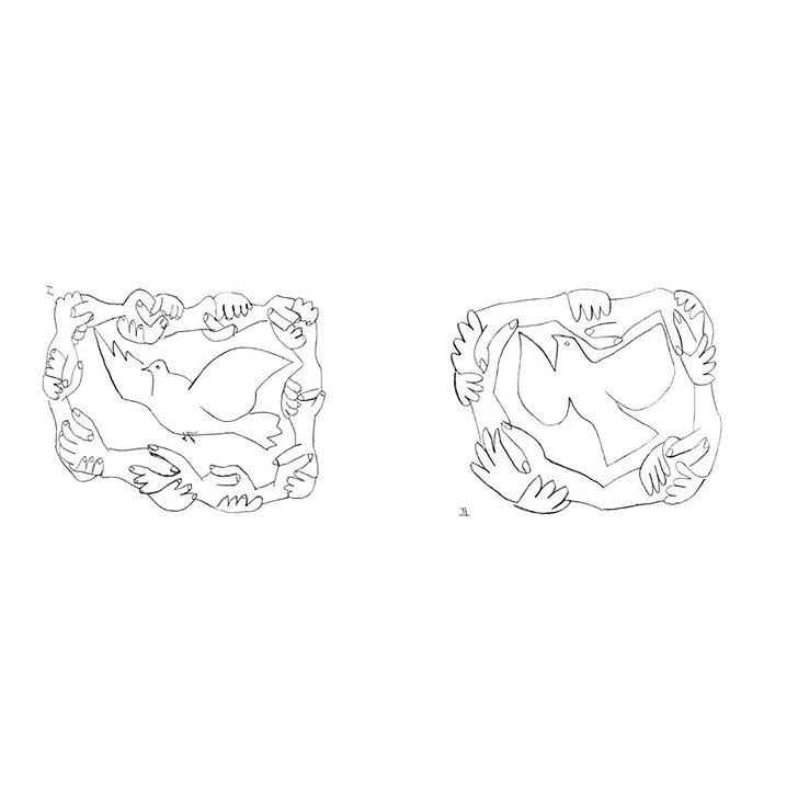 It was the Spanish Civil War and the tragedy of Guernica that cemented their common commitment against Nazism and fascism, for the freedom of peoples and for peace. This commitment found its ultimate expression in 1951 in The Face of Peace, the only book born of their collaboration. Picasso's variations on the theme of the dove - which then attained its universal status as a symbol - dialogue with the short poems of Éluard, whose tender simplicity reconnects with that of the Poems for Peace that his pacifism had inspired him to do at the end of the 1914-1918 war.