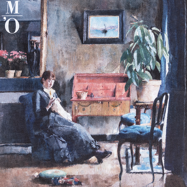 The bag is illustrated with a detail from the work of Harriet Backer (1845-1932), Blue Interior, 1883 (© Oslo, Nasjonalmuseet for kunst, arkitektur og design, NG.M.02216/ Photo: National Museum / Børre Høstland)