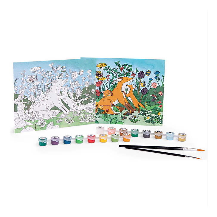 Contains 3 images (22x18cm) to paint on the theme of the explorer and their model, 2 brushes and 16 pots.