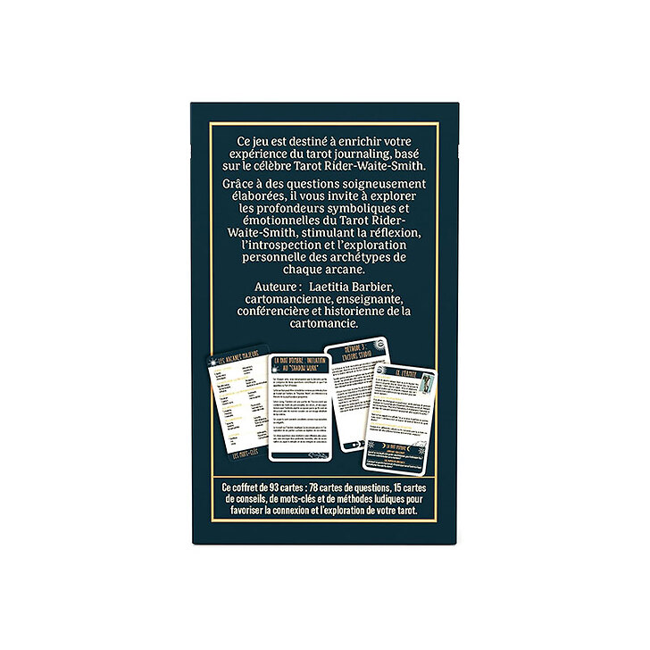 This box of 93 cards: 78 question cards, 15 cards with advice, keywords and fun methods to promote connection and exploration of your tarot.