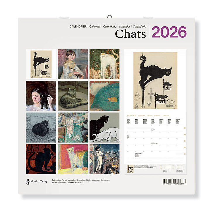 2026 Large Calendar (30x30cm) featuring 12 works on the subject of the cats at the Musée d'Orsay. 1 double page per month Languages: English, French, German, Italian, Spanish Made in France, on fine papers. © GrandPalaisRmnCréations, Paris 2025