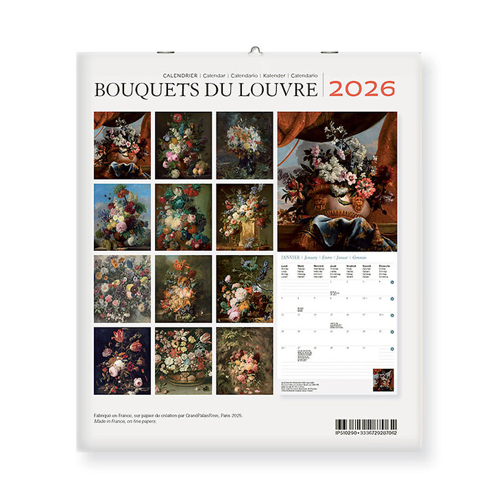 2026 Calendar (15,5x18cm) featuring 12 works on the subject of the bunch of flowers at the Musée du Louvre. 1 double page per month Languages: English, French, German, Italian, Spanish Made in France, on fine papers. © GrandPalaisRmnCréations, Paris 2025