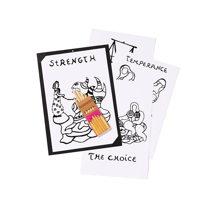 6 artwork colouring sheets The Tarot Garden of Niki de Saint Phalle
