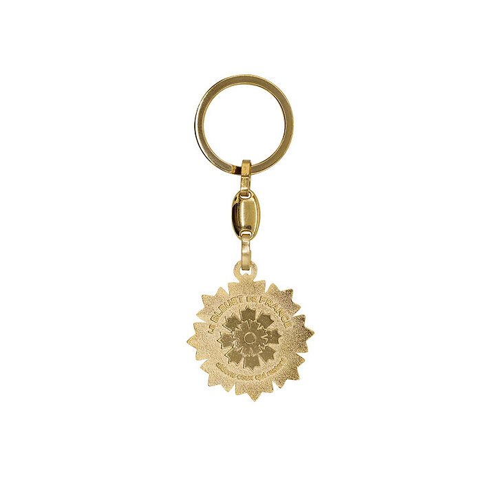 Carry this golden-coloured cut-out metal keyring with its blue-white-red petal everywhere you go to show your support for Bleuet de France.