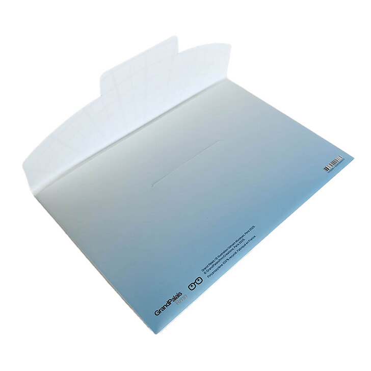 Vahram"s creation shows the Grand Palais, between reverie and imagination, bathed in morning and evening light. In the center, the tricolor flag, rich with the emotions of the 2024 Olympic Games, flutters like an emblem of the monument, of Paris, and of France - of a Grand Palais with an exclamation point!