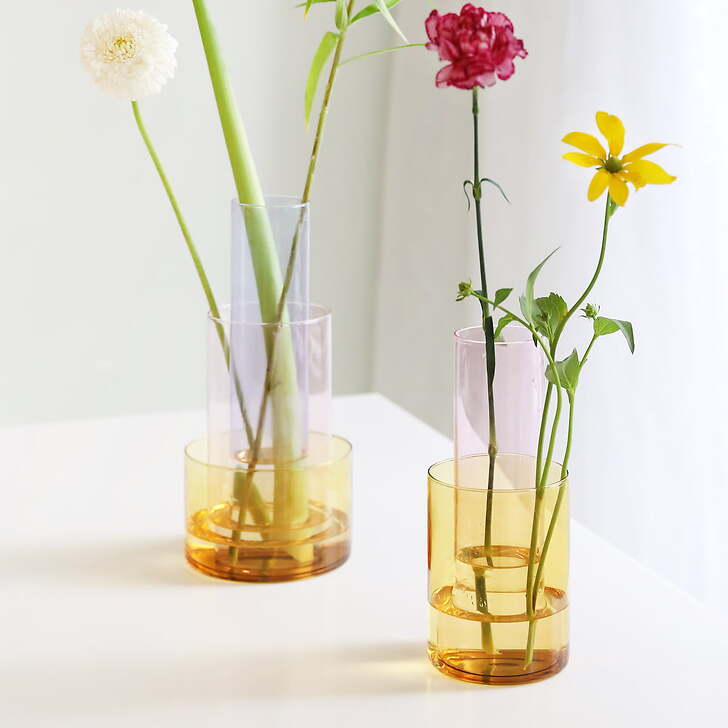 The Amphi Vase by & klevering , designed by Lex Pott for the Buro Berger sub-label, brings joy and inspiration to your home thanks to its flexible design. The vase allows you to arrange different lengths of flower stems in its multi-layered zones, creating individual and impressive flower arrangements. Thanks to the adjustable water quantities in the various sections, you can tailor the vase perfectly to your creative ideas. The light tones, inspired by the steps of an amphitheatre, create lively overlays and harmonious colour gradations that add a touch of fun even without flowers. Made from top-quality borosilicate glass, the Amphi vase combines technical precision with modern design and is a real highlight in any room.
