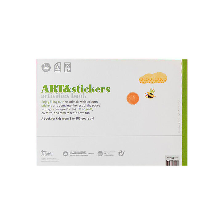 A sticker book with 50 beautiful illustrations waiting to finished by your art. Made in Barcelona on paper from sustainable forests.