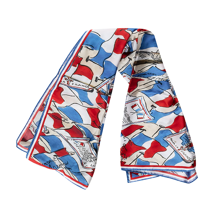 The motifs printed on this dress include the main symbols from the Free France saga: